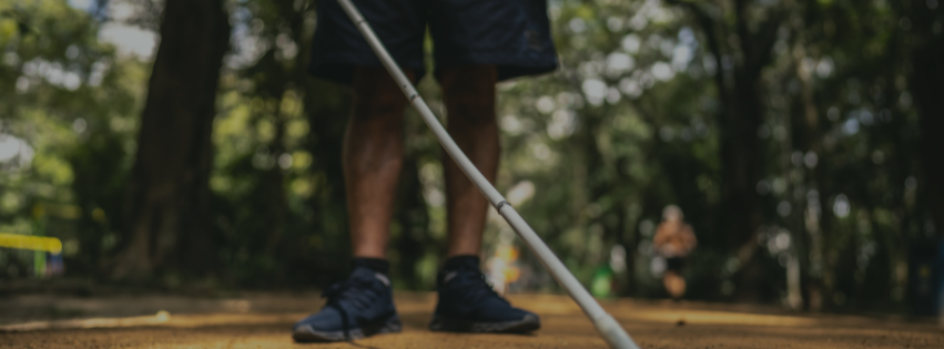 Parcours malvoyant avec canne et masque